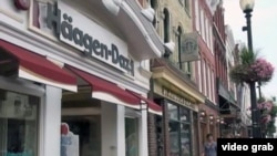 哈根达斯专卖店在美国并不太多。这是美国首都华盛顿附近一个时尚购物中心的哈根达斯专卖店。