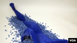 他完成的蜡笔远不止这一只。乐高砖块原本是玩具,到了内森这里,它们变成艺术品。